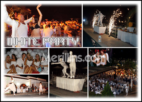 ![]() White PartyΈνα μεγάλο & εντυπωσιακό concept που βασίζεται σε 4 βασικούς άξονες. Με διακόσμηση του συνολικού χώρου της εκδήλωσης με λευκά λινά υφάσματα, με Foul Set Up Sound and Lighting, με παρουσίαση γνωστού DJ και με συμμετοχή ομάδας free Dancers και Entertainers. |