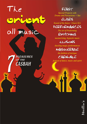![]() The Orient All MusicΜία εντυπωσιακή παράσταση, προβάλλοντας εκρηκτικούς χορευτικούς ρυθμούς, πολύχρωμους φωτισμούς και μοναδικές χορογραφίες που μας έρχονται από την μακρινή Ανατολή. |
